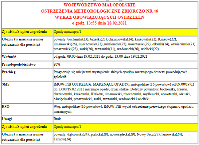 Ostrzeżenie meteo_nr 46 - opady marznące 1 2021-02-18