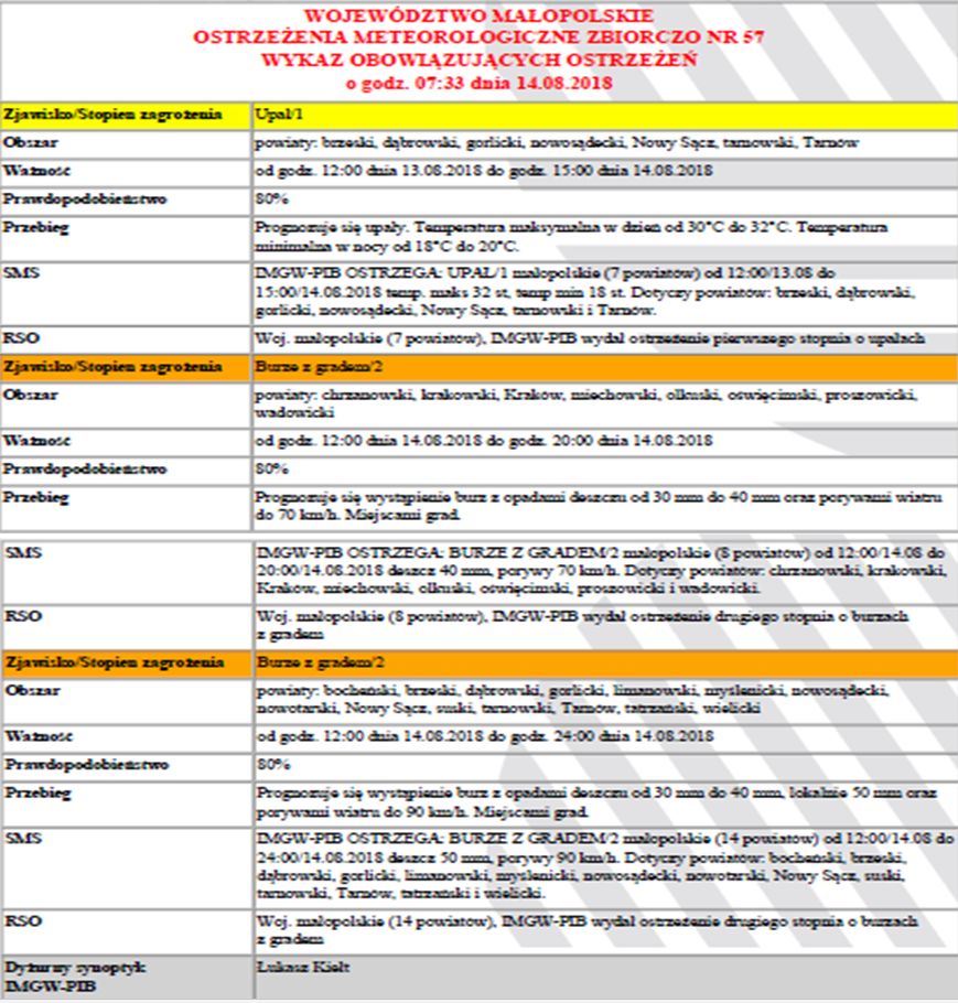 Ostrzeżenie meteorologiczne: Burze z gradem/2 2018-08-14