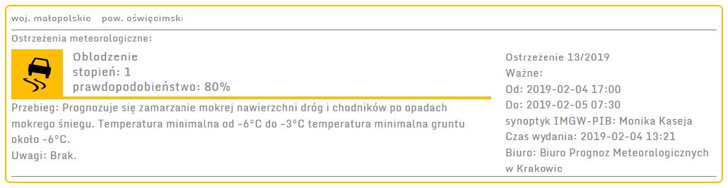Ostrzeżenie meteorologiczne: Oblodzenie stopień: 1 2019-02-04