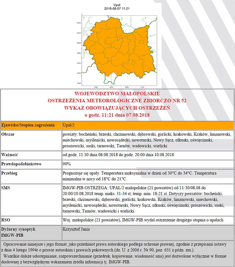 Ostrzeżenie meteorologiczne: Upał/2 2018-08-07