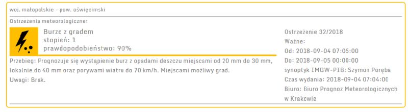 Ostrzeżenie meteorologiczne: burze z gradem/ 1 2018-09-04