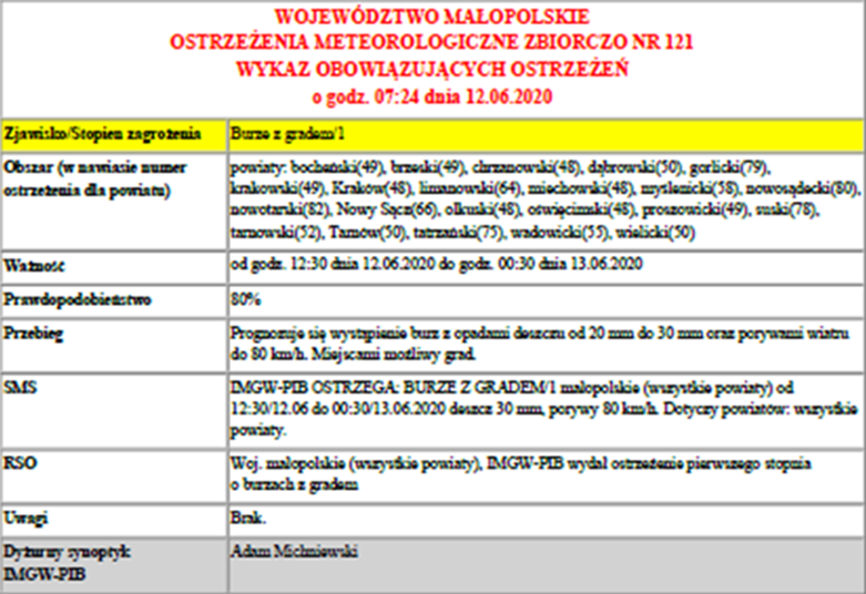 Ostrzeżenie meteorologiczne burze z gradem/1 2020-06-12