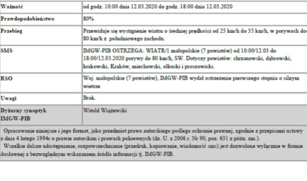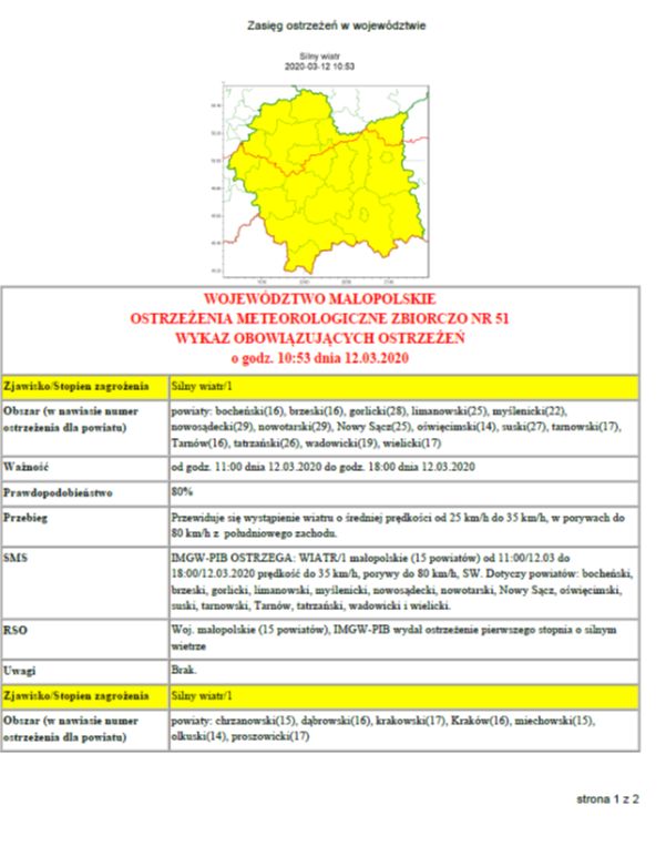 Ostrzeżenie meteorologiczne nr 51 silny wiatr 1 2020-03-12