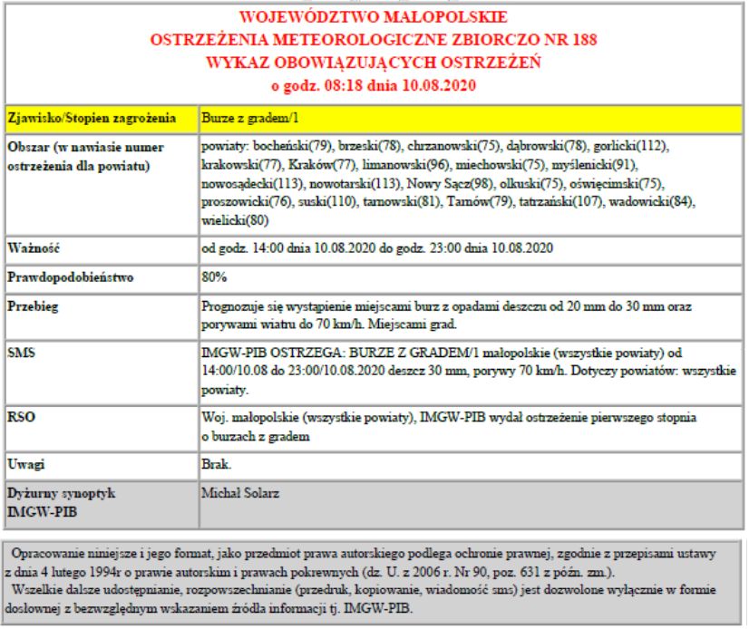 Ostrzeżenie meteorologiczne nr 75 - burze z gradem/1 2020-08-10