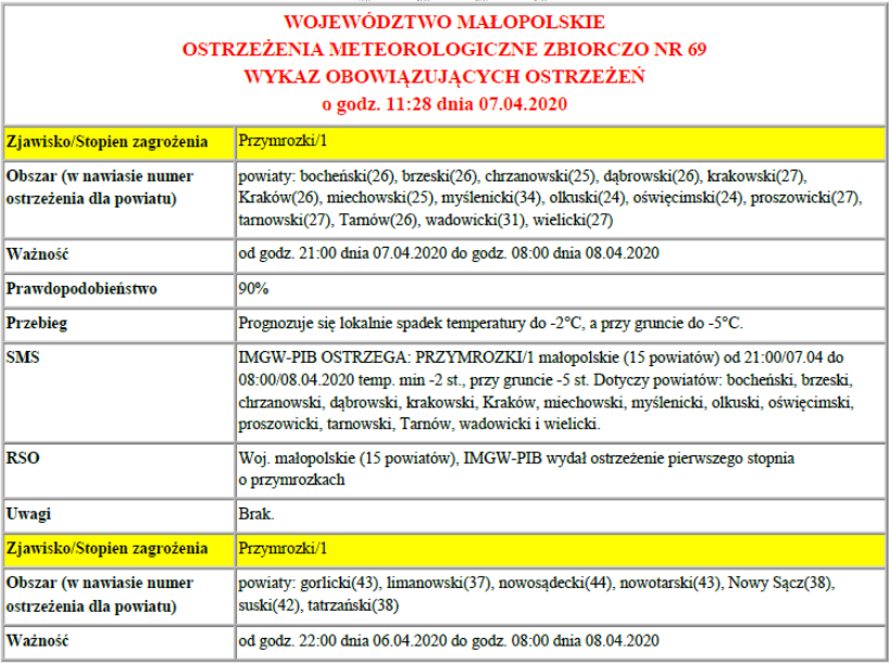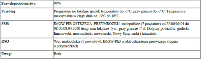 Ostrzeżenie meteorologiczne 2020-04-07
