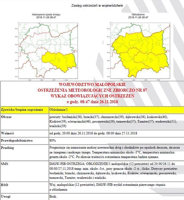 Ostrzeżenie: oblodzenie/ 1 2018-11-26