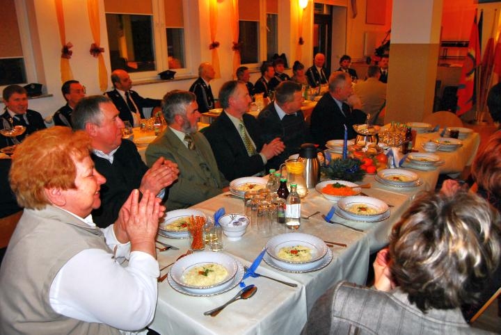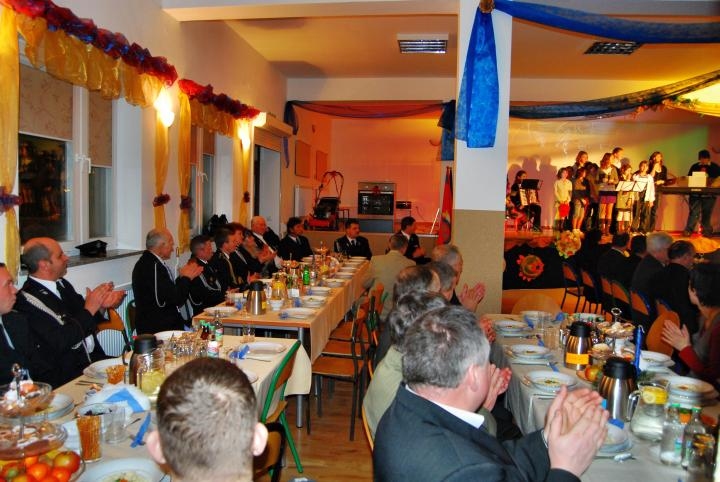 Dalsza część uroczystości odbyła się w sali widowiskowej nowego obiektu, gdzie w pierwszej kolejności wygłoszone zostały przemówienia okolicznościowe, podziękowania, gratulacje a także życzenia noworoczne. Podczas swoich wystąpień Burmistrz wraz z Przewodniczącym Rady Miejskiej wręczyli Prezesowi OSP oraz Przewodniczącej KGW okolicznościowe dyplomy i prezenty.