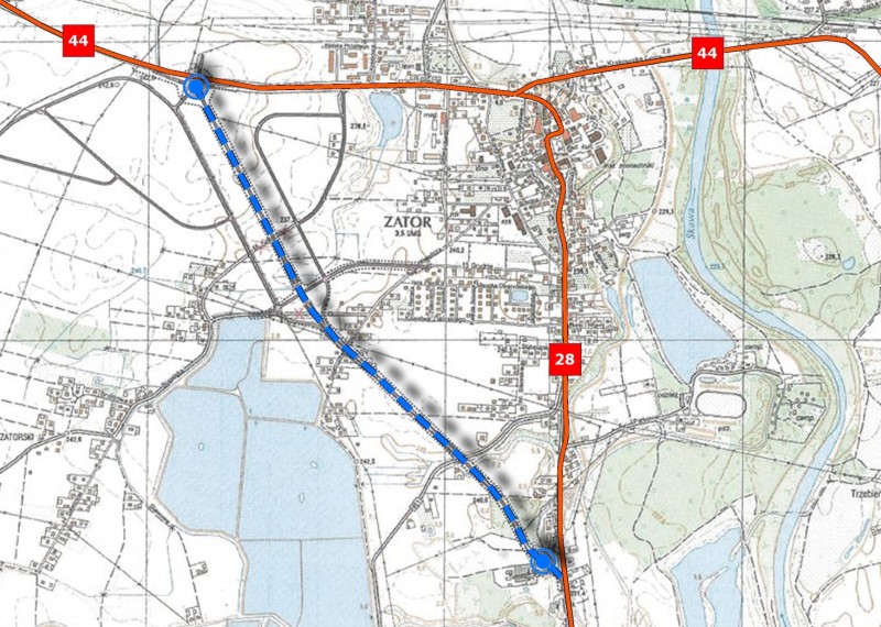 Obwodnica Zatora połączy drogi krajowe nr 28 i nr 44. Będzie miała jedną jezdnię o długości 2,1 km. Oprócz obwodnicy w ciągu drogi krajowej nr 28 przebudowany zostanie odcinek drogi wojewódzkiej nr 781. W ramach projektu obwodnicy maja powstać dwa wiadukty, most i dwa przepusty.
