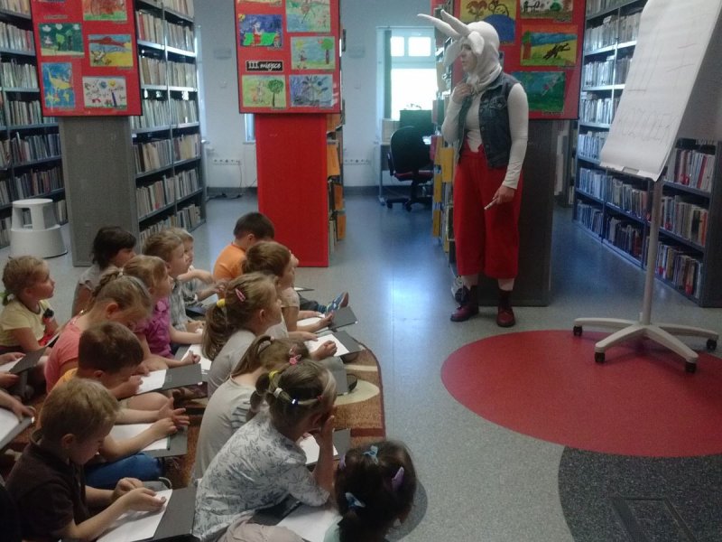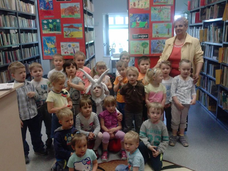 23 maja dzieci wybrały się do biblioteki w Zatorze na majowe spotkanie z Koziołkiem Matołkiem. Przedszkolaki uczestniczyły w warsztatach z cyklu pt. „Dokąd? Do Pacanowa – z Koziołkiem Matołkiem przez świat.” Świetnej zabawie towarzyszyły bajki z udziałem Koziołka. Każdy stworzył samodzielnie widokówkę z jego wizerunkiem oraz otrzymał „paszport” uprawniający do podróżowania z bohaterem. Na zakończenie spotkania dzieciom zostały wręczone nagrody za udział w konkursie plastycznym.