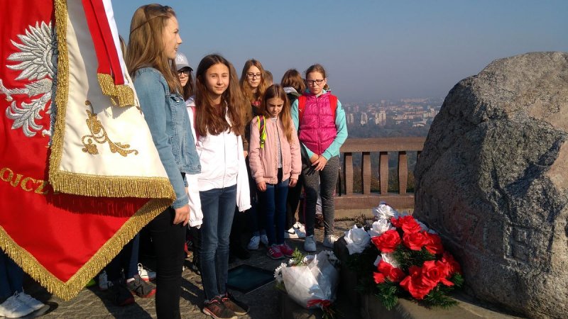 Dziewiętnastego października klasy VII SP i III gimnazjum wraz z dyrektorem szkoły Panem Piotrem Januszykiem i nauczycielkami: Lucyną Gwóźdź – Kurzak i Alicją Hajduk udały się do Krakowa. Celem wyjazdu był pobyt na Kopcu Kościuszki. Po przybyciu na miejsce uczniowie rozpoczęli wspinanie na wzniesienie fortu „Kościuszko” usytuowanego na wzgórzu błogosławionej Bronisławy. Na szczycie, przy obelisku upamiętniającym czyny Tadeusza Kościuszki rozpostarli sztandar szkoły, złożyli biało – czerwone kwiaty i posłuchali przygotowanych wcześniej opowieści o jego życiu i patriotycznej działalności.