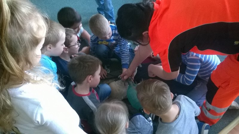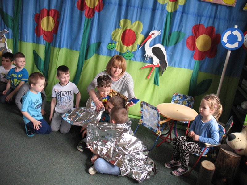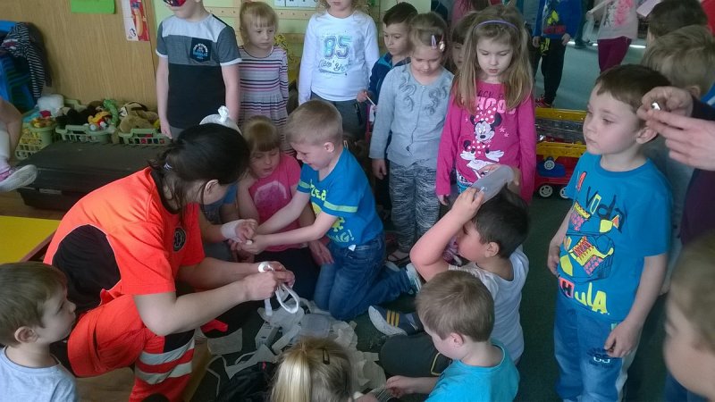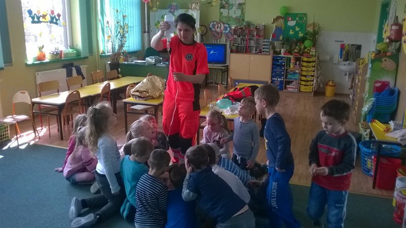 W czwartek 21.04.2016r.w Zespole Szkół Ogólnokształcących w Podolszu mieliśmy niecodziennego gościa: panią Magdalenę Smolik-ratownika medycznego Powiatowego Szpitala w Wadowicach a jednocześnie byłą uczennicę naszej szkoły. W spotkaniu wzięły udział przedszkolaki, dzieci z oddziału „0” i uczniowie klas klas I-III SP. Podczas spotkania dzieci poznały zasady udzielania pierwszej pomocy oraz mogły zastosować te zasady w praktyce pod czujnym okiem pani ratownik . Najmłodsi testowali na sobie folię, która z jednej strony ma kolor złoty i po nakryciu ogrzewa rannego, z drugiej zaś srebrny, mający właściwości chłodzące. Mieli także okazję wczuć się w zawód lekarza. Wzajemnie badali się przy użyciu stetoskopu, bandażowali kolegom nogi, ręce, głowy, zakładali rękawiczki i robili „zastrzyki”. Wszystkie te czynności sprawiały maluchom ogromną radość, a jednocześnie dzieci były pod wrażeniem ważności i celowości wykonywania takich zabiegów.