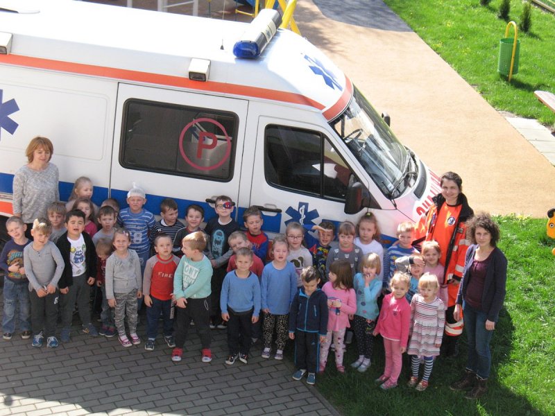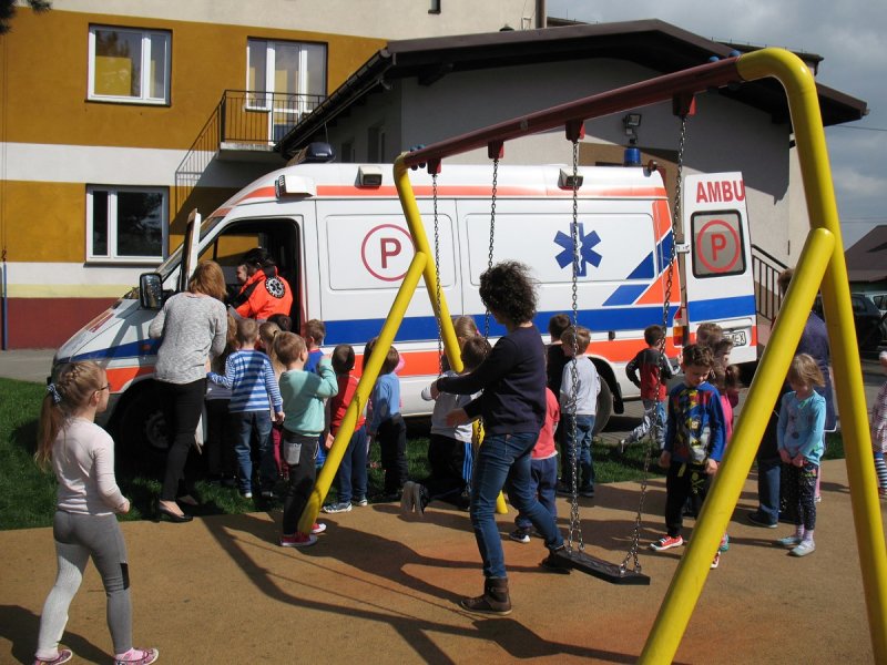 Dzieci dowiedziały się także jak wykonywać sztuczne oddychanie, jak podłączyć respirator osobom mającym trudności z samodzielnym oddychaniem oraz w jakich sytuacjach podaje się kroplówkę i jak ją załączyć. Na koniec spotkania czekała jeszcze jedna atrakcja, a mianowicie uczniowie zobaczyli karetkę stojącą przed budynkiem szkoły. „Mali ratownicy” z ciekawością zwiedzali jej wnętrze – obserwowali migające światła i włączali syrenę .