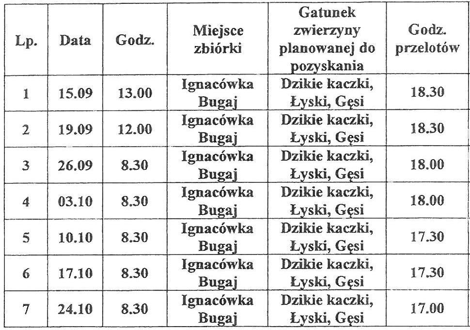 Poniżej zamieszcza się kolejno plany polowań w zakresie przekazanym przez poszczególne Koła Łowieckie: