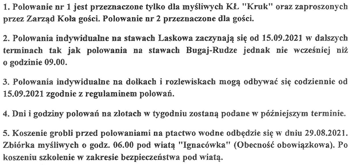W razie złych warunków atmosferycznych Zarząd zastrzega sobie prawo zmiany terminu danego polowania.