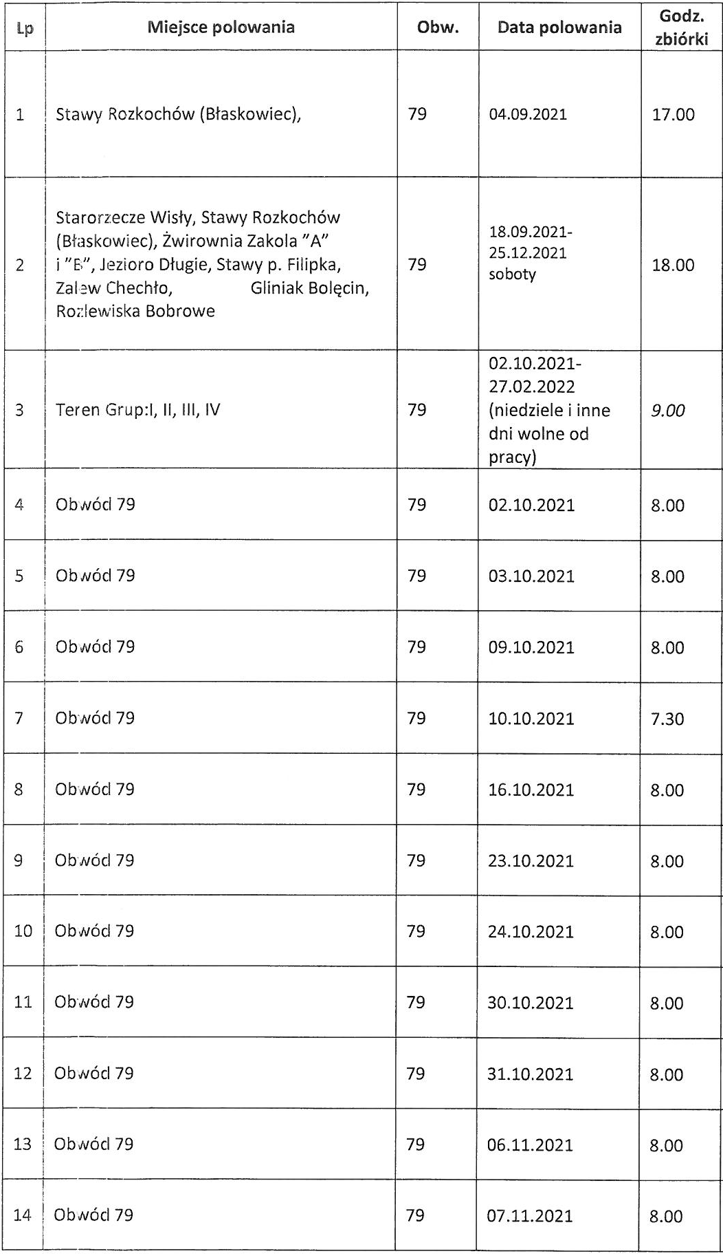 Wszystkie polowania trwają maksymalnie do zachodu słońca.