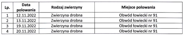 Stosownie do art. 42ab ust. 2 ustawy z dnia 13 października 1995 roku prawo łowieckie (t.j. Dz. U. z 2022 r., poz. 1173) w nawiązaniu do Obwieszczenia Burmistrza Zatora z dnia 21 lipca 2022 roku (o podaniu do publicznej wiadomości planu polowań zbiorowych w sezonie 2022/2023) podaje do publicznej wiadomości cztery kolejne terminy w ramach zaplanowanych polowań zbiorowych w sezonie łowieckim 2022/2023 Polskiego Związku Łowieckiego, Zarządu Okręgowego w Krakowie – Ośrodka Hodowli Zwierzyny w Zatorze (obwód łowiecki nr 91).