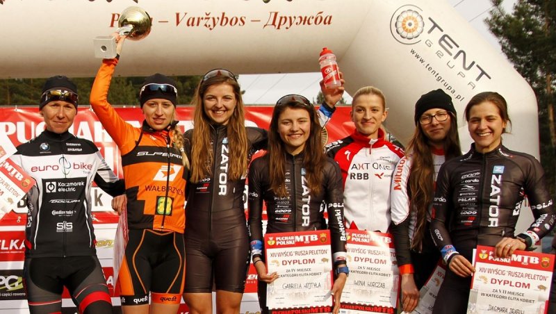 Dobre wieści płyną z Białegostoku, również po starcie zawodniczek UKS SOKÓŁ Zator. W elicie kobiet, w pierwszej siódemce znalazły się aż trzy nasze reprezentantki. Co więcej, w kategorii młodzieżowej na podium stanęły dwie nasze kadrowiczki. Na drugiej pozycji w kategorii do lat 23 uplasowała się Rita Malinkiewicz, a na trzeciej Gabriela Wojtyła. Należy dodać, że w wyścigu tym wystartowały wszystkie najmocniejsze kolarki z Polski. Na starcie nie zabrakło aktualnej Mistrzyni Polski oraz brązowej medalistki mistrzostw. Zwyciężyła aktualna wicemistrzyni Akademickich Mistrzostw Świata rozegranych w ubiegłym miesiącu na Filipinach. Powodem tak silnej obsady zawodów były kryteria kwalifikacyjne do Mistrzostw Europy, w których to Białystok oraz Praga były brane pod uwagę przez trenera kadry narodowej w kontekście powołań do Reprezentacji Polski. Od startu na czoło sukcesywnie przesuwały się zarówno Rita, jak i Gabi. Ta pierwsza, przez chwilę liderowała w wyścigu, jednak start dzień wcześniej i dwunastogodzinna podróż dały się we znaki i Rita straciła dwie pozycje. Dla nas nie było to wielkie zmartwienie, ponieważ barwy Zatora dzielnie reprezentowała Gabriela Wojtyła, zajmując drugą pozycję w stawce pań U23. Układ sił zmienił się dopiero po godzinie wyścigu, kiedy to bardziej doświadczona Rita wyprzedziła naszą ubiegłoroczną najlepszą polską juniorkę. Ostatecznie wśród „orliczek” wygrywa Aleksandra Podgórska KKW SUPERIOR Wałbrzych, drugie miejsce Rita Malinkiewicz, a trzecie Gabriela Wojtyła - obie UKS SOKÓŁ Zator. W elicie pań open, dało to miejsce 3 i 4, a w pierwszej dziesiątce uplasowała się jeszcze jedna nasza zawodniczka – Dagmara Drabik, zajmując siódmą lokatę.