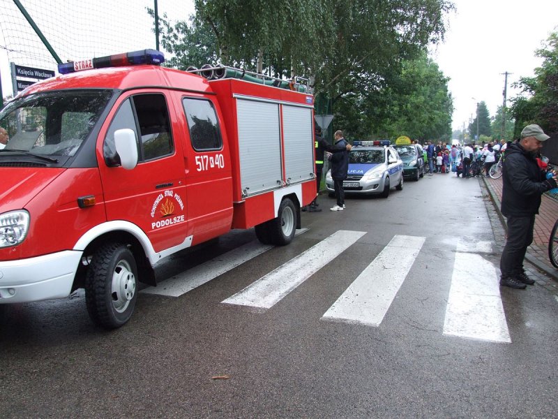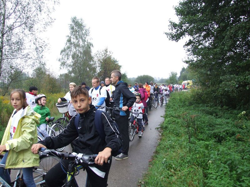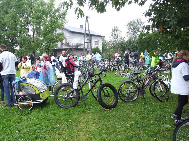 Mimo niesprzyjającej aury (deszcz nie rozpieszczał uczestników i organizatorów) na miejsce startu (czyli boisko szkolne ZSO w Podolszu) stawiło się ponad 300 cyklistów – dorosłych i dzieci, którzy na wstępie otrzymali od organizatorów okolicznościowe i mapy Doliny Karpia, a najmłodsi - dodatkowo opaski odblaskowe.