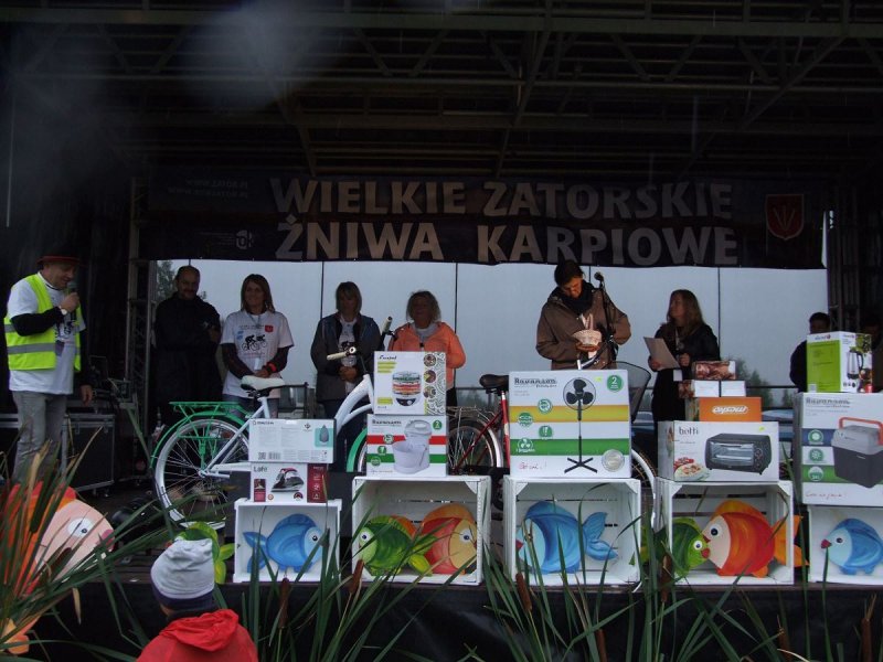 Zaopatrzeni w nieprzemakalną odzież, wyruszyli nasi cykliści na trasę rajdu, która prowadziła malowniczymi zakątkami Doliny Karpia: zatorskie stawy - Przeciszów Podlesie – Przeciszów –Łowiczki – Bugaj – Osiedle Królewiec w Zatorze (tu podziękowania dla przewodniczącego Rady Osiedla p. Bogdana Bieńka za przyjęcie rajdowiczów na półmetkowy odpoczynek) – Podolsze – Morysina – Palczowice – Smolice. Metą stało się łowisko w Podolszu, gdzie miała miejsce doroczna impreza – Żniwa Karpiowe. Mimo deszczu i panującego chłodu wszyscy uczestnicy dzielnie pokonali trasę rajdu i w niezłych humorach dotarli do mety. A tu zostali powitani przez organizatorów kiełbaskami z grilla, ciepłym żurkiem, butelką wody i pysznym drożdżowym ciastem przygotowanym przez Koło Gospodyń Wiejskich z Podolsza.