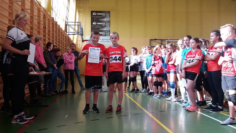 W niedzielę 6 października ruszyła trzecia już edycja Liga Minisiatkówki Trójek. Do pierwszego turnieju w Zatorze przystąpiło aż 15 zespołów! Reprezentacje SP nr 1 Wadowice, Skawa Wadowice, Sokół Zator, SP Wysoka, SP nr 1 Przeciszów, SP nr 5 w Wadowicach. Zawodnicy rozegrali po 6 meczy. Podzieleni na 3 grupy rywalizowali każdy z każdym. Następnie zależnie od lokaty grupowej o poszczególne miejsca. UKS Sokół Zator reprezentowały 4 ekipy. Sokół Zator 1 ( Zuzia, Wiki, Bartek) wygrał swoją grupę i trafił do strefy medalowej. Tam wygrał spotkanie z SP Wysoka 2 , w drugim meczu prowadził do stanu 14:12. Wtedy to nie udało się przyjąć zagrywki rywalek z Przeciszowa i spotkanie o złoto zespół przegrał jednym punktem. Zespoły Sokoła 2, 3 i 4 zajmując niższe lokaty w grupie, rywalizowały o miejsca poza pierwszą trójką.
