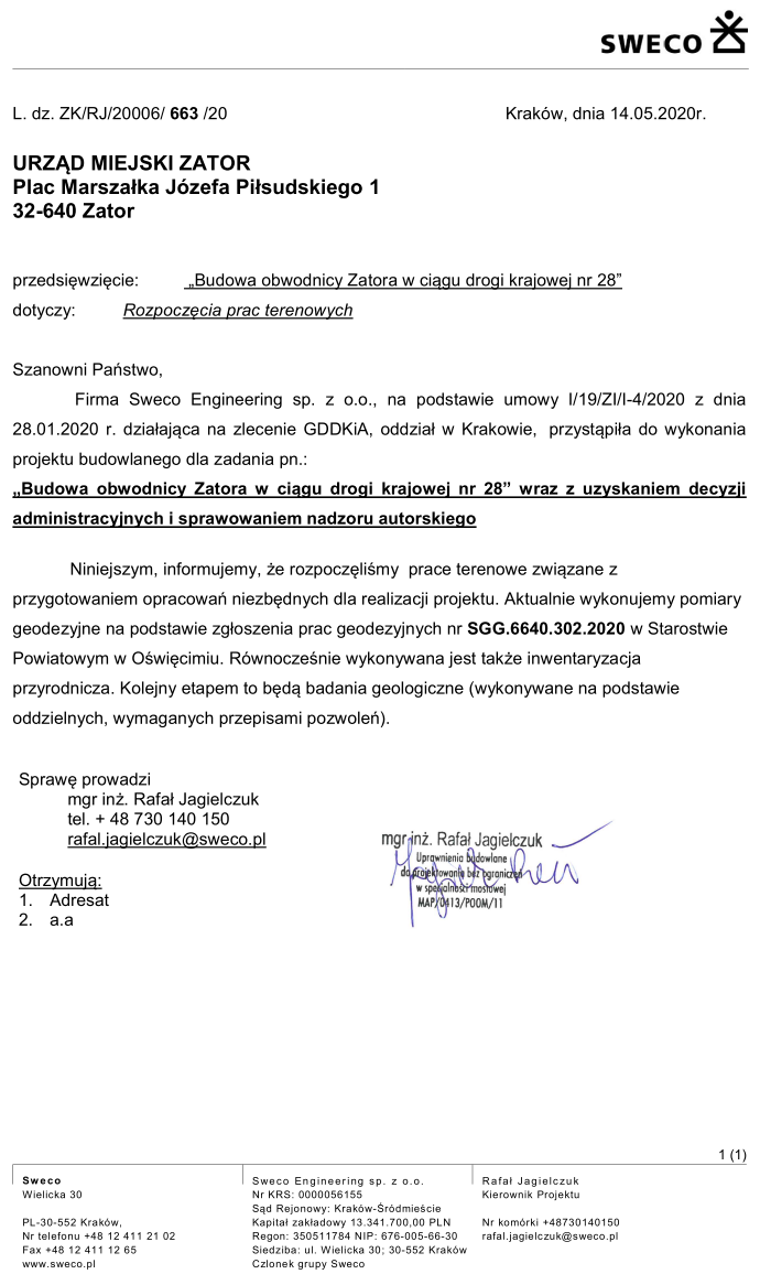 Rozpoczęcie prac terenowych związanych z przygotowaniem projektu obwodnicy Zatora 2020-05-25
