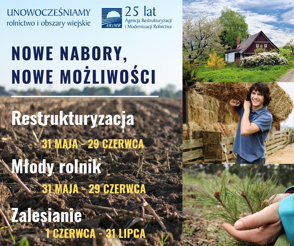 Na przełomie maja i czerwca rozpoczną się kolejne nabory wniosków o przyznanie pomocy dla rolników z budżetu PROW 2014-2020. Agencja Restrukturyzacji i Modernizacji Rolnictwa będzie przyznawać premie dla młodych rolników, wsparcie na restrukturyzację małych gospodarstw oraz na zalesianie i tworzenie terenów zalesionych.