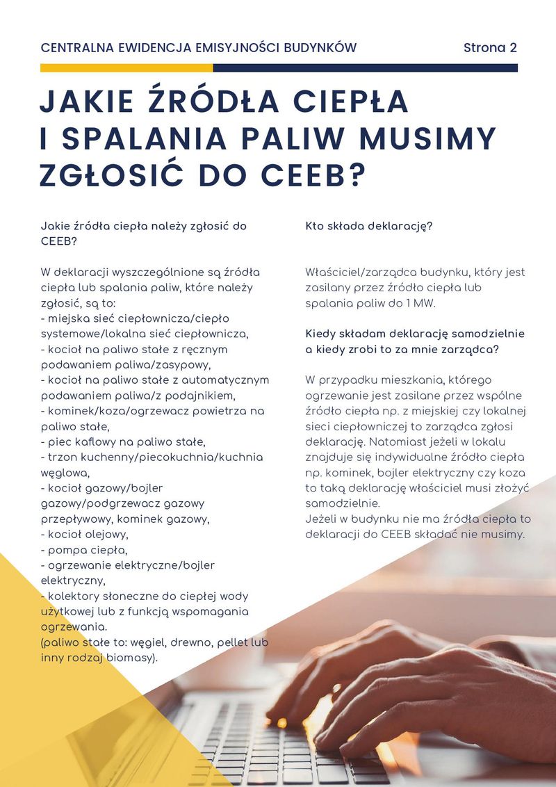 Już 1 lipca rozpoczyna się proces składania deklaracji do Centralnej Ewidencji Emisyjności Budynków (CEEB). Ma to na celu zebranie wszystkich danych dotyczących źródeł ciepła i spalania paliw w budynkach mieszkalnych i niemieszkalnych. CEEB została wprowadzona ustawą z dnia 28 października 2020 r. o zmianie ustawy o wspieraniu termomodernizacji i remontów oraz niektórych innych ustaw. Na podstawie ustawy każdy właściciel oraz zarządca budynku, w którym znajduje się źródło ciepła, został zobowiązany do przekazania deklaracji inwentaryzacyjnej w przewidzianych terminach.