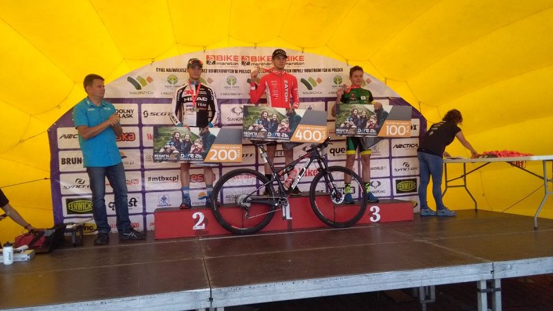 Dwa złota i srebro, to dorobek trójki zawodników Sokoła Zator podczas zakończonych Mistrzostw Polski w maratonie MTB. Wałbrzych gościł najlepszych kolarzy górskich specjalizujących się w najbardziej wytrzymałościowej odmianie tej dyscypliny sportu. Łącznie, do rywalizacji na wszystkich dystansach przystąpiło około 1300 zawodników. Najlepsi, chcący walczyć o Mistrzostwo Polski, musieli się zmierzyć z dystansem „giga”. 71 kilometrów w terenie mocno górzystym, dało w sumie 2600 metrów przewyższenia! Już od startu, zawodnicy zatorskiego klubu włączyli się do walki o medale. Jako pierwszy, radość ze złota dał nam Stanisław Nowak. Dystans „mega” (50km) przeznaczony dla juniorów, pokonał wspólnie z czwórką najmocniejszych rywali. Decydujący był ostatni, techniczny zjazd w kierunku mety. To na nim nasz zawodnik mógł w pełni wykorzystać możliwości swojego roweru z pełnym zawieszeniem i pokazać swój kunszt jazdy. Odskoczył rywalom na 16 sekund i taką przewagę dowiózł do mety.
