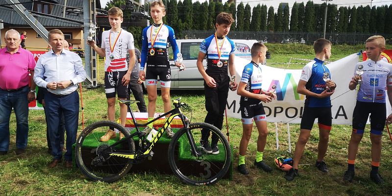 Po bardzo udanym występie w zawodach powiatowych, gdzie uczeń ZSO Zator, trenujący w klubie UKS SOKÓŁ zdobył złoty medal przyszedł czas na potwierdzenie swych możliwości w finale wojewódzkim. Dawid Śliwiński stanął w Sieprawiu do walki o medale w Igrzyskach Młodzieży. W tych prestiżowych dla szkół zawodach finałowych, na starcie nie zabrakło najlepszych zawodników, którzy z powodzeniem rywalizują na arenie ogólnopolskiej oraz zaliczają starty międzynarodowe. W tym doborowym towarzystwie nasz Mistrz Powiatu spisał się naprawdę znakomicie. Po bardzo dobrym wyścigu, w którym regularnie podczas wszystkich okrążeń zajmował miejsca w najlepszej trójce, sięgnął ostatecznie po srebro wygrywając finisz z zawodnikiem z powiatu myślenickiego. To kolejny medal finałów wojewódzkich, jaki zawodnicy UKS Sokół zdobyli dla ZSO Zator.