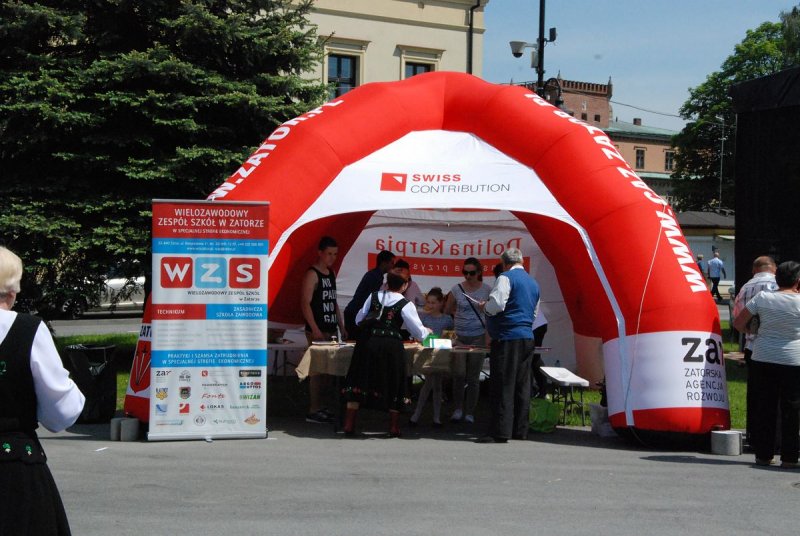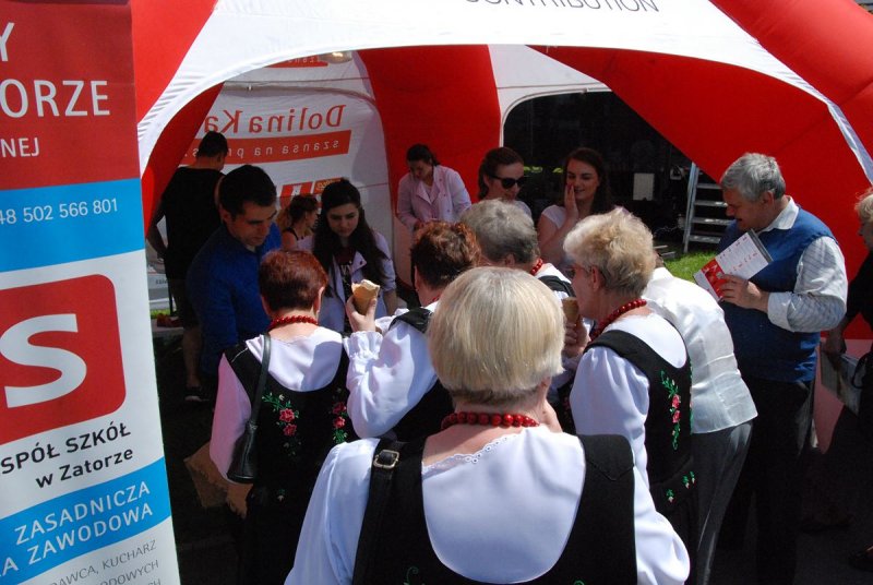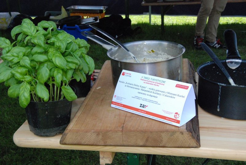 22 maja br. w całej Dolinie Karpia odbyły się już po raz piaty Targi Turystyczne organizowane przez Gminę Zator, Stowarzyszenie Dolina Karpia i Regionalny Ośrodek Kultury w Zatorze. Turyści z Paszportem Doliny Karpia odwiedzali ciekawe, atrakcyjne miejsca naszego regionu. W tym czasie na Zatorskim Rynku odbywał się festiwal kulinarno-artystyczny. Kuchenne karpiowe rewolucje przygotowali Mistrzowie ze Stowarzyszenia Małopolskich Kucharzy i Cukierników, odbył się pokaz przyrządzania potraw z zatorskiego karpia i oczywiście degustacje. Lokalne przysmaki serwowały także Panie z KGW w Grodzisku, KGW w Palczowicach oraz uczniowie z Wielozawodowego Zespołu Szkół w Zatorze; pokaz i stoiska kulinarne współfinansowane były ze środków Szwajcarsko-Polskiego Programu Współpracy – z Projektu Dolina Karpia Szansą na Przyszłość. Na turystów czekały także niespodzianki kulinarne w straganie z potrawami lokalnymi Doliny Karpia, podano: żur po przeciszowsku (KGW w Przeciszowie), fileciki z karpia w zalewie (Spiżarnia Doliny Karpia), jabłecznik radoczański (Zespół Szkół Rolnicze Centrum Kształcenia Ustawicznego w Radoczy), sernik królewski (KGW w Ryczowie), kładzionkę ziemniaczaną (KGW w Witanowicach), obwarzanka pobiedrskiego (KGW w Sosnowicach), karpia wędzonego (Skarby Doliny Karpia) i rogaliki drożdżowe z jabłkiem i cynamonem (restauracja Revel Pub w Zatorze).