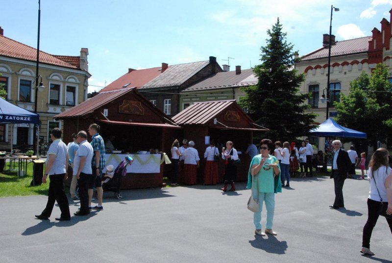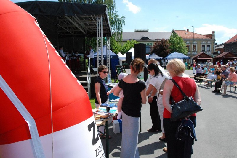Na płycie rynku były stragany rękodzielników z ArtDoka oraz stoiska promocyjno-turystyczne i reklamowe firm z całej Doliny Karpia. Dla najmłodszych był kolorowy ogródek zabaw z malowaniem twarzy i akcją plastyczną kolorowania zatorskich karpików.