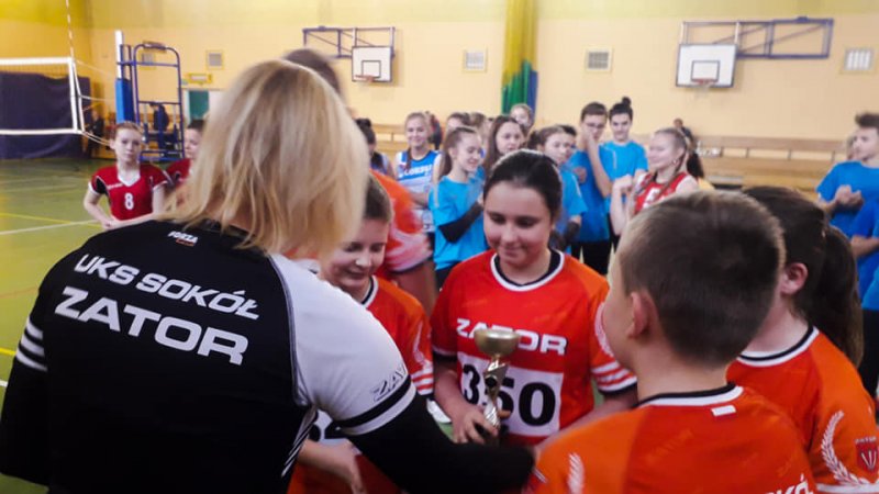 W sobotę 7 grudnia sportowa młodzież rywalizowała w Turnieju Siatkarskim o Puchar Burmistrza Zatora. Oprócz drużyn gospodarza zawodów –Sokoła Zator , do boju stawiły się również zaprzyjaźnione zespoły z SP 1 i SP5 w Wadowicach, SP w Wysokiej i drużyna Sokół nr 2 z SP w Laskowej. Wszystkie drużyny rozegrały po cztery mecze do dwóch wygranych setów. Drużyny Sokoła radziły sobie ze zmiennym szczęściem. Rozpoczęły od meczu przeciwko sobie. Lepszy okazał się Sokół 1. Drużyna z Laskowej trenująca w UKS Sokół, po raz pierwszy wystartowała w turnieju siatkarskim szóstek. Mimo to świetnie dawała sobie radę w meczach z doświadczoną młodzieżą z innych drużyn. Wysoka wygrała z Laskową dopiero po tie breaku, a zwycięzca turnieju przeżył chwilę grozy, gdy Laskowiacy byli o krok od wyrwania im punktu. Sokół 1 przyzwyczaił nas do emocji. Dopiero ostatni, dziesiąty mecz turnieju, pomiędzy SP1 a Sokołem 1 miał zdecydować o klasyfikacji końcowej turnieju. Sokół wygrał pierwszego seta, przegrał drugiego. Było jasne, że turnieju już nie wygra, ale stawka toczyła się do końca o miejsce 2 lub 3. No cóż, jaka piękna i nieprzewidywalna jest ta SIATKÓWKA . Tylko SOKÓŁ Zator pokonał SP1 Wadowice zapewniając sobie drugie miejsce na podium. Do pierwszego brakło 1 małego punktu.