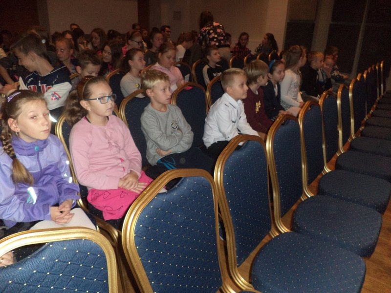 Dnia 20 października byliśmy całą szkołą na koncercie edukacyjnym Z OPERĄ NA TY w Regionalnym Ośrodku kultury w Zatorze. Mieliśmy przyjemność obejrzeć fragmenty opery komicznej Karola Kurpińskiego pt. Zamek na Czorsztynie”. Cała muzyka przepełniona była Polskością. Rozpoznaliśmy melodie krakowiaka i poloneza. Wszyscy byliśmy bardzo zachwyceni. „Najbardziej podobał mi się dzielny rycerz oraz jego tchórzliwy i zabawny sługa” - powiedział Antek z klasy drugiej. Zainteresowanie dzieci wzbudziły stroje „zwłaszcza strój rycerza, który miał ubraną zieloną koszulę, piękne spodnie przepasane pasem.” - dodał Mikołaj. Miłosza natomiast rozbawił „sługa rycerza, który wszystkiego się bał”.