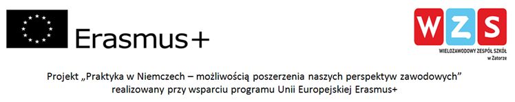 W Wielozawodowym Zespole Szkół w Zatorze realizowany jest od września projekt ERASMUS+ „Praktyka w Niemczech – możliwością poszerzenia naszych perspektyw zawodowych”, który umożliwi uczestnikom wyjazdu odbycie staży w niemieckich firmach. Szkoła pozyskała 66 742 EUR z funduszy Unii Europejskiej w ramach Programu Erasmus+, Akcja 1: Mobilność edukacyjna. Partnerem projektu jest firma Vitalis GmbH z siedzibą w Schkeuditz. Głównym celem projektu jest podniesienie praktycznych umiejętności oraz kompetencji zawodowych i językowych 28 uczniów Wielozawodowego Zespołu Szkół w Zatorze - jak podaje koordynator projektu Izabela Łysek.