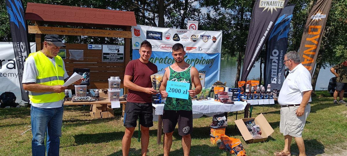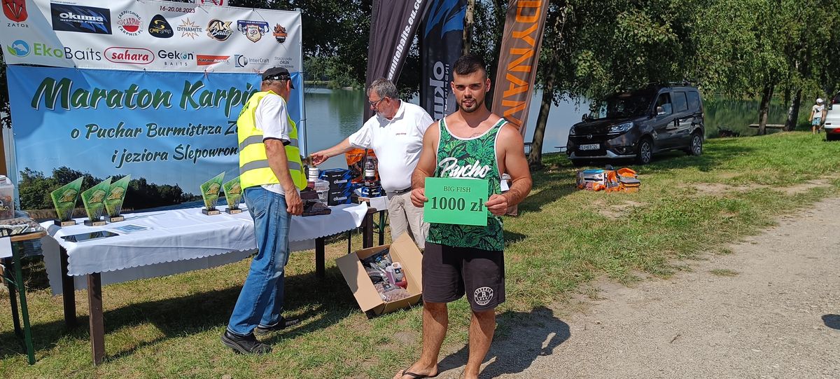 Tegoroczny Maraton przybrał nazwę Inter, bowiem w zawodach uczestniczyła drużyna ze Słowacji. Startowało 21 drużyn, które zgłosiły do ważenia ryby o masie 783,280 kg. Osiągnięty wynik łączny jest większy niż uzyskany przed rokiem. Pobity też został rekord w kategorii Big Fish, który od teraz wynosi 20,470 kg. Do klasyfikacji drużynowej Maratonu liczyły się amury i karpie o wadze powyżej 8 kg. Wyniki osiągnięte przez drużyny to suma wagi trzech największych, złowionych ryb. Nagrody główne w Maratonie za zajęcie trzech pierwszych miejsc wynosiły 4000 zł, 3000 zł i 2000 tys. zł i były ufundowane przez organizatora czyli Stowarzyszenie Wędkarskie Ślepowron w Podolszu. Premię 1000 zł w kategorii Big Fisch ufundowała spółka INTERCRAFT. Inter Carp Maraton o Puchar Burmistrza Zatora i jeziora Ślepowron 2023 wsparło zacne grono fundatorów nagród rzeczowych z firmą Okuma na czele. Oprócz atrakcyjnych głównych nagród rzeczowych dzięki nim odbyło się także losowanie nagród dla tych wszystkich, którym szczęście w zawodach dopisało mniej. Wielkie dzięki! Bądźcie z nami!