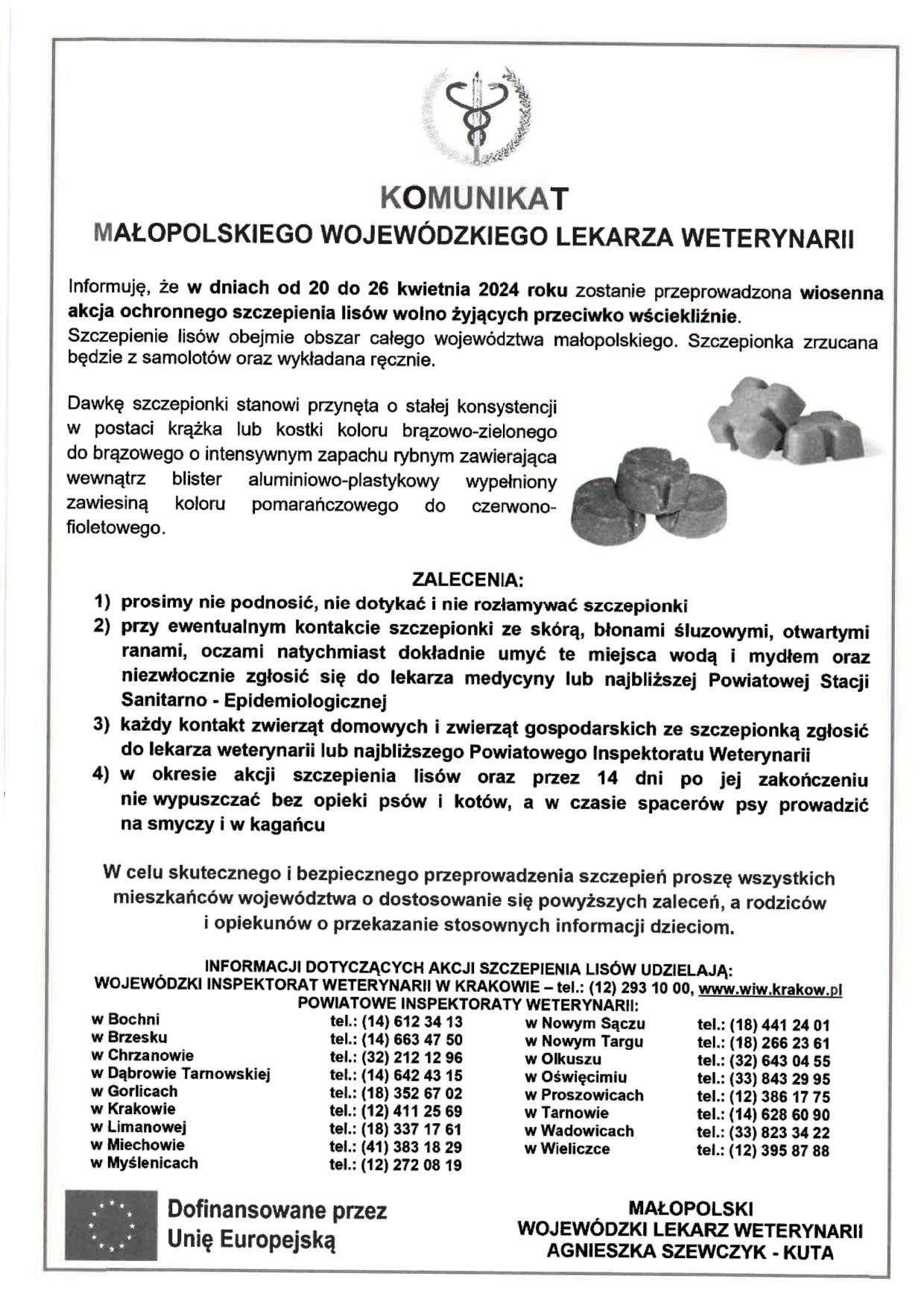 Komunikat Małopolskiego Wojewódzkiego Lekarza Weterynarii