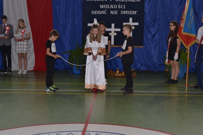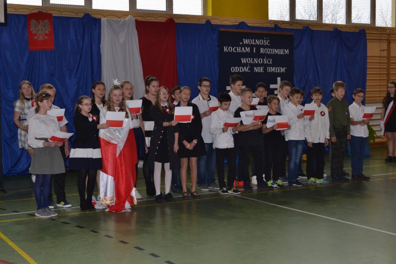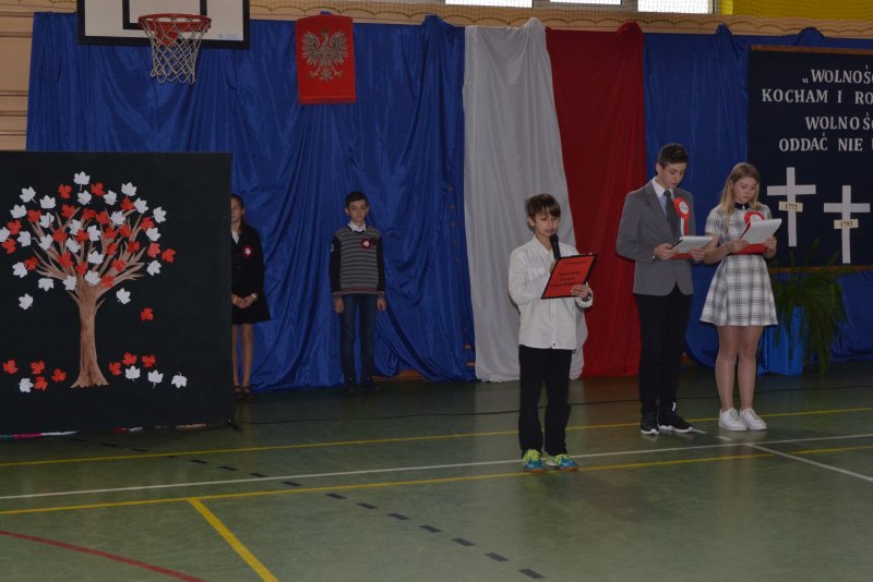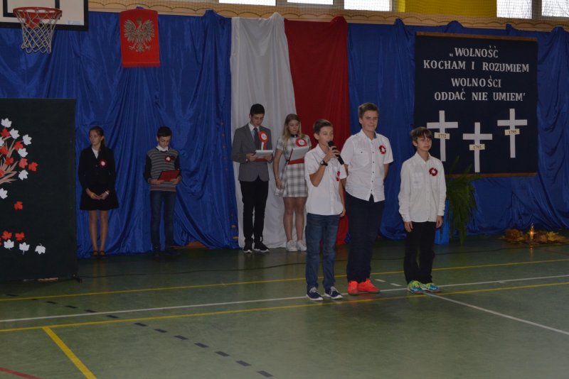 Głównym punktem tego dnia była uroczysta akademia przygotowana przez uczniów klas szóstych pod przewodnictwem pani Moniki Skowron i Krystyny Adamskiej. Apel miał na celu uświadomienie młodzieży, jak ciężko odzyskać swobodę życia po 123 latach zaborów. Młodzież przygotowująca akademię zadbała o odpowiedni nastrój poprzez ukazanie w sposób symboliczny scen historycznych. Niemały udział w tych scenkach miała muzyka, która wprowadzała odpowiedni klimat. Ponadto pojawiły się przepięknie wyrecytowane utwory patriotyczne, pieśni w wykonaniu uczniów klas szóstych oraz rys historyczny przedstawiony przez prowadzących.