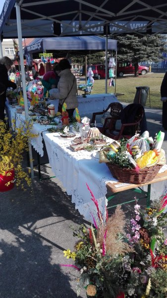 Na stoiskach można było podziwiać dekorację wielkanocnego koszyka przygotowaną przez uczniów ZSO w Podolszu oraz zakupić wyroby rękodzielników Doliny Karpia : Andrzeja i Krystyna Żwawów, Danuty Kucharczyk, Zofii Szlachetka, Stanisławy Kucharczyk, Joanny Janota JSJ Furniture&Design oraz.