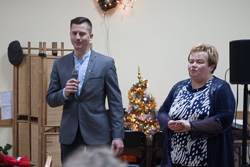 Ksiądz Bartłomiej Bartosik zaprosił do wspólnej modlitwy , po czym pobłogosławił zebranych i opłatki .Dzielenie się opłatkiem i składanie sobie życzeń jest równoznaczne z dzieleniem się sercem, miłością, przebaczaniem, wyciąganiem ręki do bliźniego z uśmiechem i taka atmosfera serdeczności zapanowała i pozostała do końca spotkania.