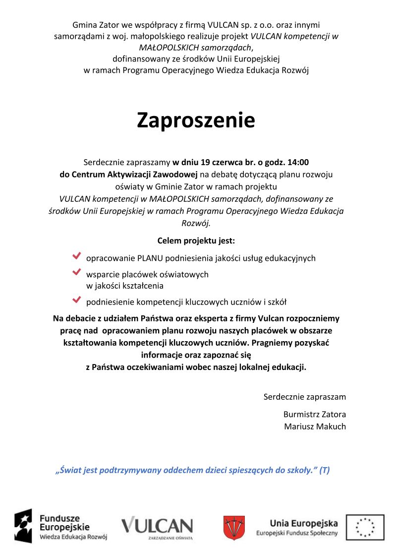 Zaproszenie na debatę oświatową 2018-06-11