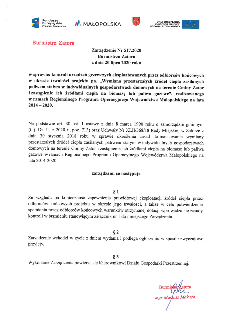 Zarządzenie Nr 51'7.2020Burmistrza Zatora 2020-07-21