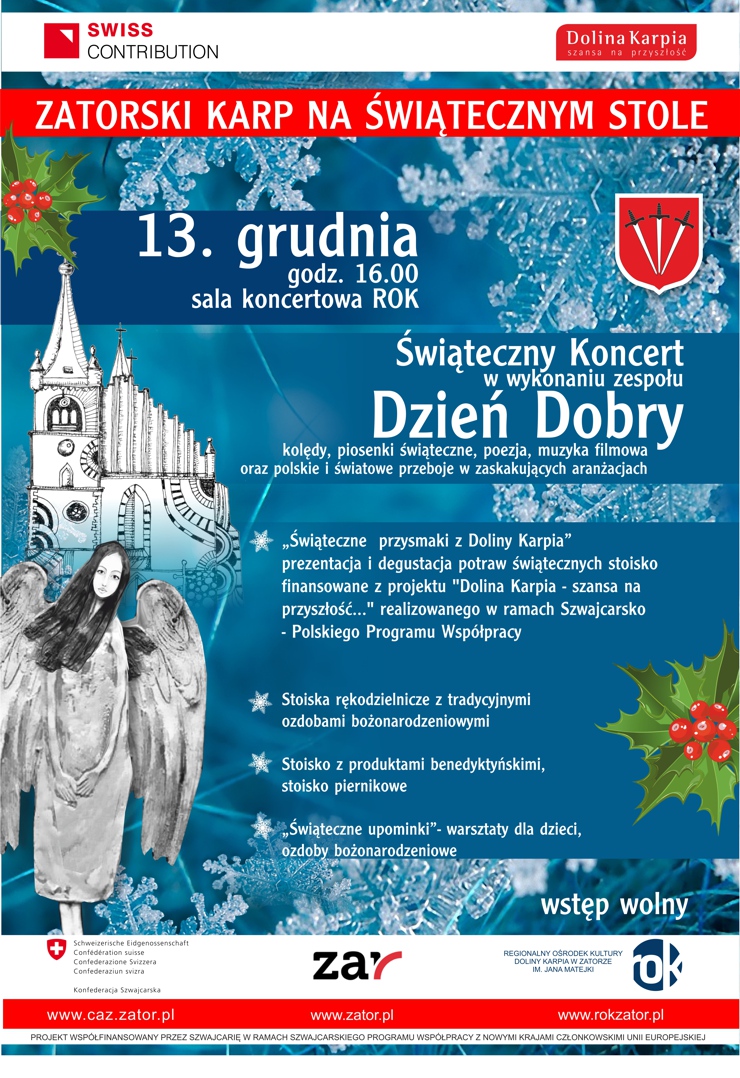 13. grudnia - ZATORSKI KARP NA ŚWIĄTECZNYM STOLE, godz. 16.00, sala koncertowa ROK , wstęp wolny