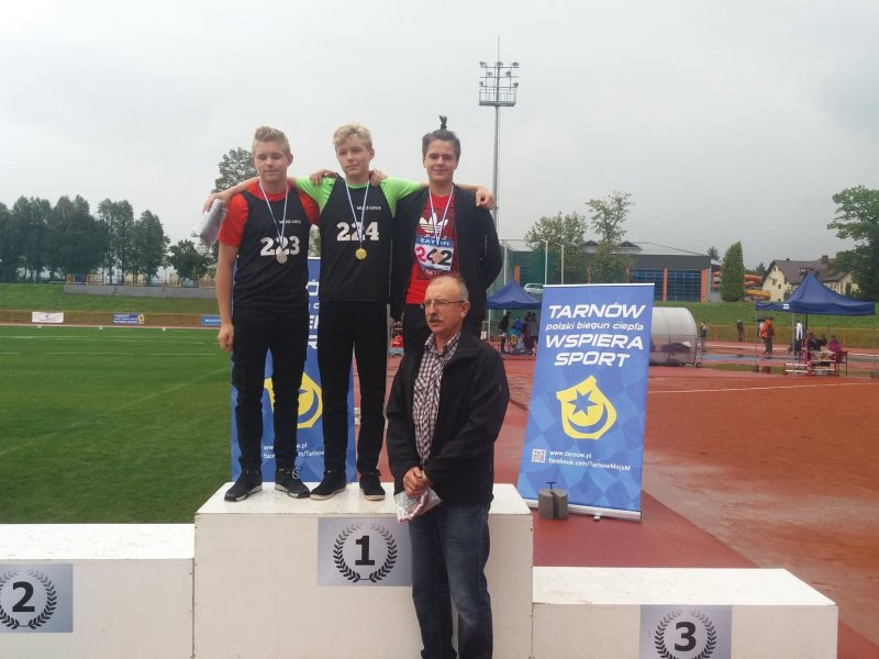 W trudnych deszczowych warunkach, na stadionie lekkoatletycznym w Tarnowie, odbyły się Mistrzostwa Województwa Małopolskiego w lekkiej atletyce, dla kategorii wiekowych dzieci starszych i młodszych oraz młodzików. Do rywalizacji przystąpiło niemal 500 zawodników z wszystkich małopolskich klubów sportowych. Wśród nich, również liczna, piętnastoosobowa reprezentacja UKS Sokół Zator. Młodzi zatorscy lekkoatleci, zdobyli aż trzy tytuły mistrzowskie. Najlepiej spisał się Krzysztof Gałuszka, który wygrywając konkurencję rzutu piłką palantową, zdobył tytuł Mistrza Małopolski! Z brązowego medalu w tej samek konkurencji, mógł się cieszyć Bartosz Brusik, który zostaje drugim wicemistrzem. Oliwier Rzepa w konkurencji pchnięcia kulą również odnosi swój kolejny sukces i staje na podium Mistrzostw, jako brązowy medalista. Zawodnicy, na co dzień trenują w sekcji LA UKS Sokół oraz są uczniami klasy sportowej ZSO Zator. Podczas wakacji szlifowali formę na zgrupowaniu kondycyjnym UKS SOKÓŁ w Białym Dunajcu. Relacja z tego wydarzenia już wkrótce.