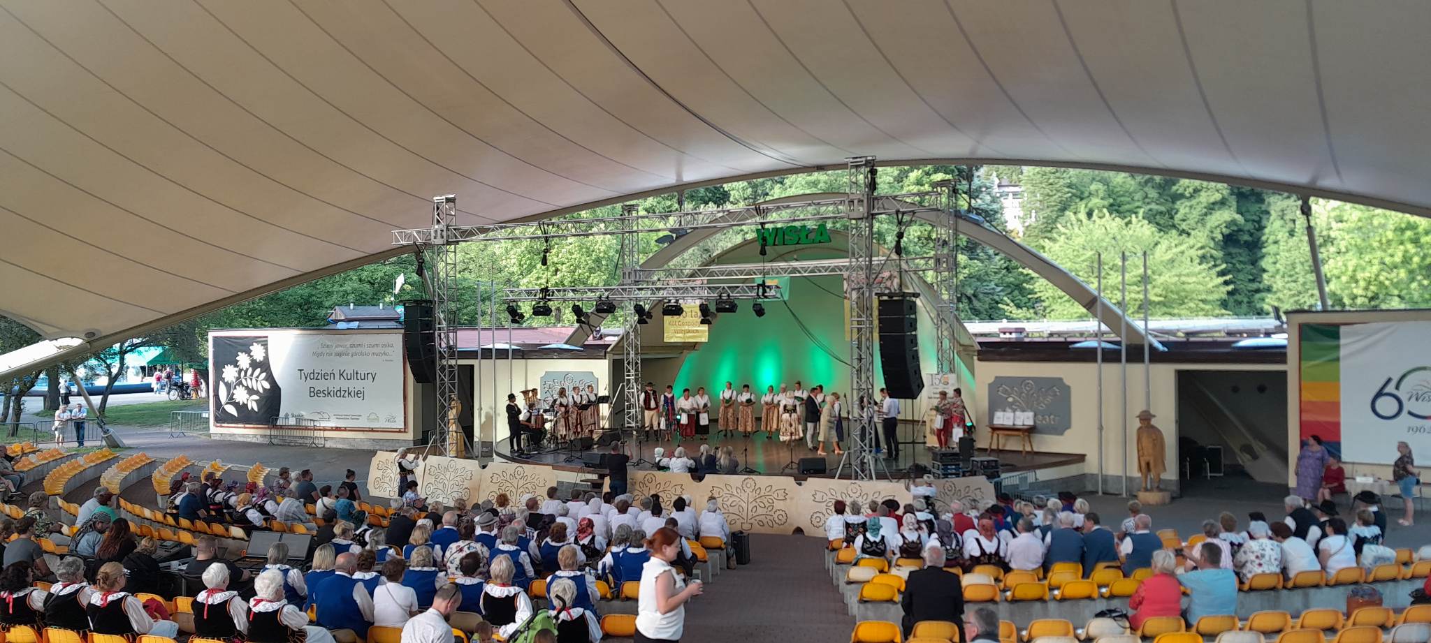 W niedzielę 18 czerwca br. w wiślańskim amfiteatrze odbył się XV Przegląd Zespołów Kół Gospodyń Wiejskich. Przegląd miał charakter ponadregionalny i zorganizowany został przez Rejonowy Związek Rolników Kółek i Organizacji Rolniczych w Bielsku Białej. Uczestniczyło w nim ok. 40 zespołów KGW z województwa Śląskiego, Małopolskiego i Podkarpackiego. Każdy z zespołów przygotował ciekawy program artystyczny, który zaprezentował na scenie. Gminę Zator reprezentował zespół Śpiewaczy Podolszanka. Przy akompaniamencie akordeonu oraz trąbki Panie wykonały cztery ludowe przyśpiewki pt. „Ja do dziewczyny”, „Zachodzi słoneczko”, „Sąsiadeczki”, „Ja do miasta nie pojadę”.