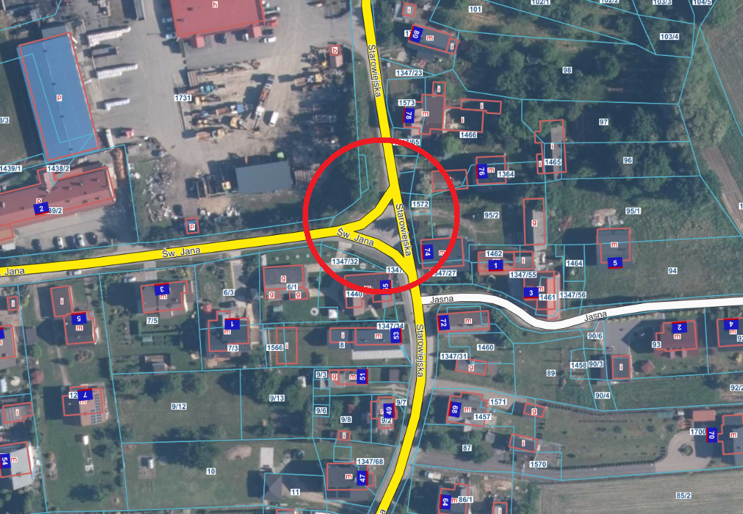 *skrzyżowanie ul. Jagodowej z ul. Św. Jana i ul. Długą w Podolszu