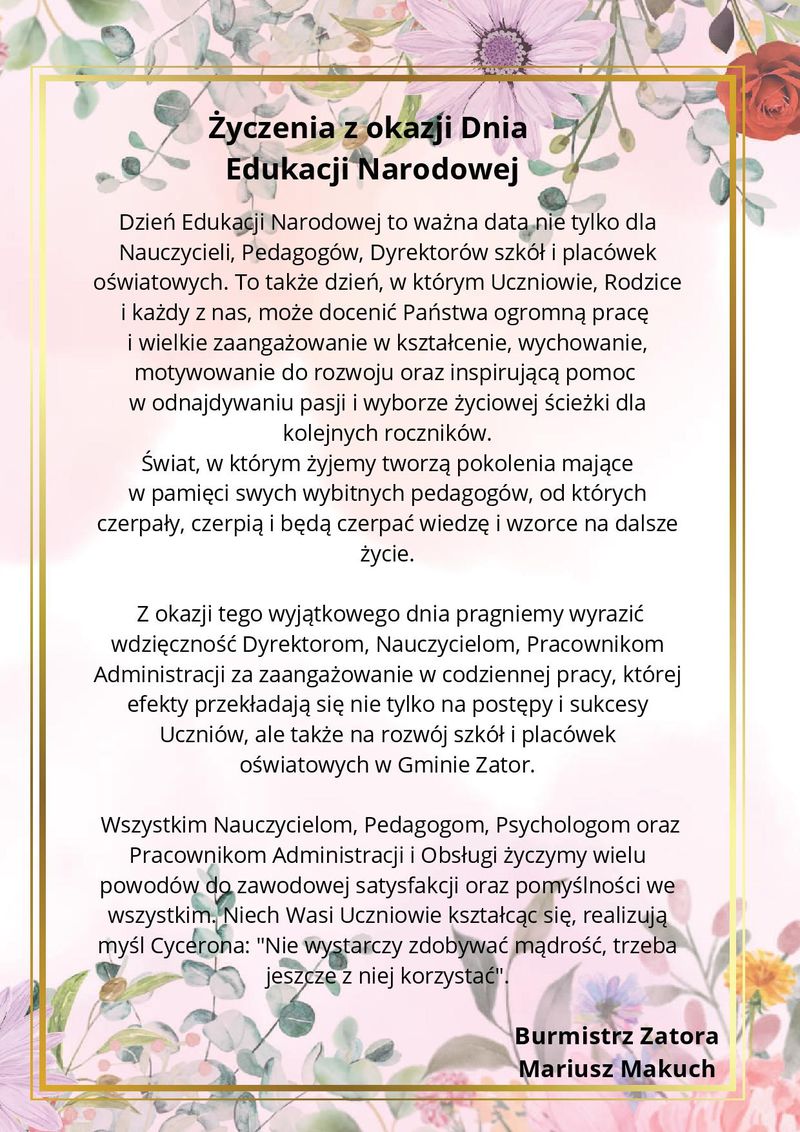 Życzenia z okazji Dnia Edukacji Narodowej 2023-10-13
