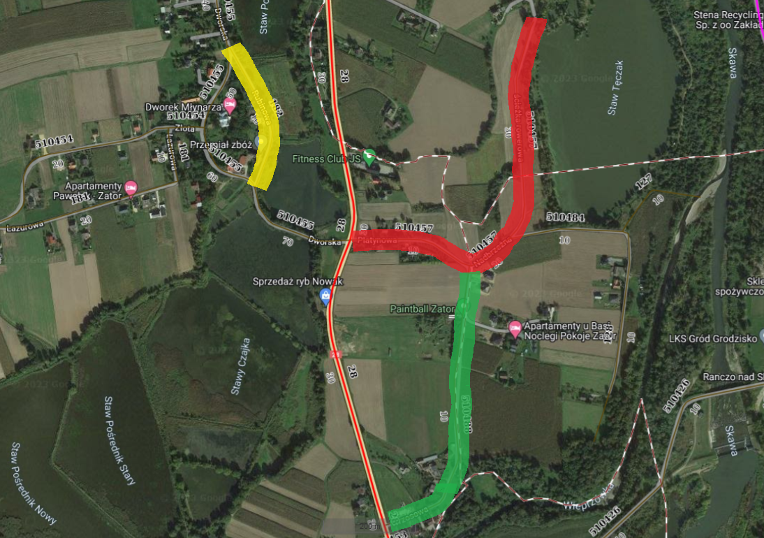 2) modernizacja drogi publicznej nr 510457K, na którą składają się ul. Platynowa w Rudzach, ul. Tęczak w Grodzisku i Trzebieńczycach. i ul. Nadbrzeżna w Grodzisku, o dł. łącznej ok. 880 mb;