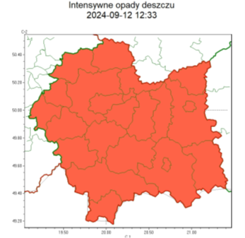RSO Woj. małopolskie (wszystkie powiaty), IMGW-PIB wydał ostrzeżenie trzeciego stopnia o intensywnych opadach deszczu