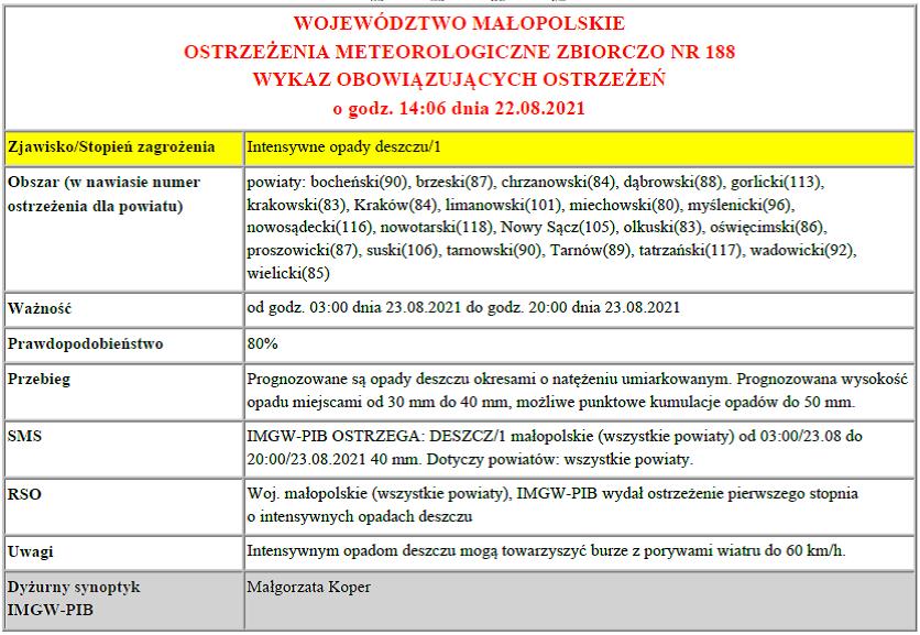 Prognozowane są opady deszczu okresami o natężeniu umiarkowanym