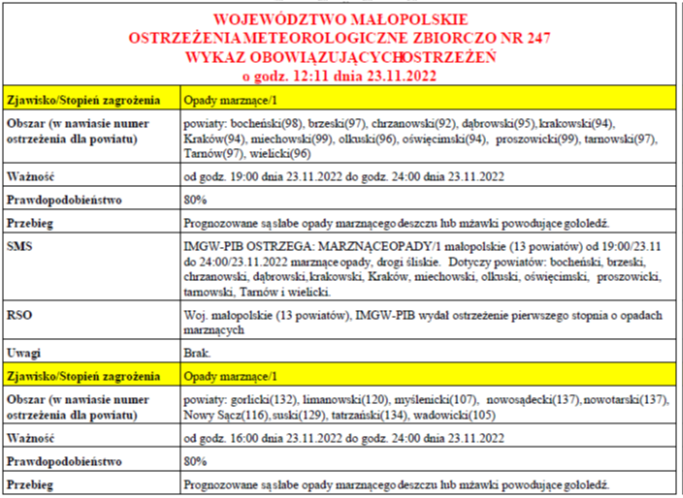 W związku z powyższym proszę podjąć stosowne działania zapobiegawcze i ostrzegawcze związane z ostrzeżeniem ludności oraz przygotować odpowiednie służby.